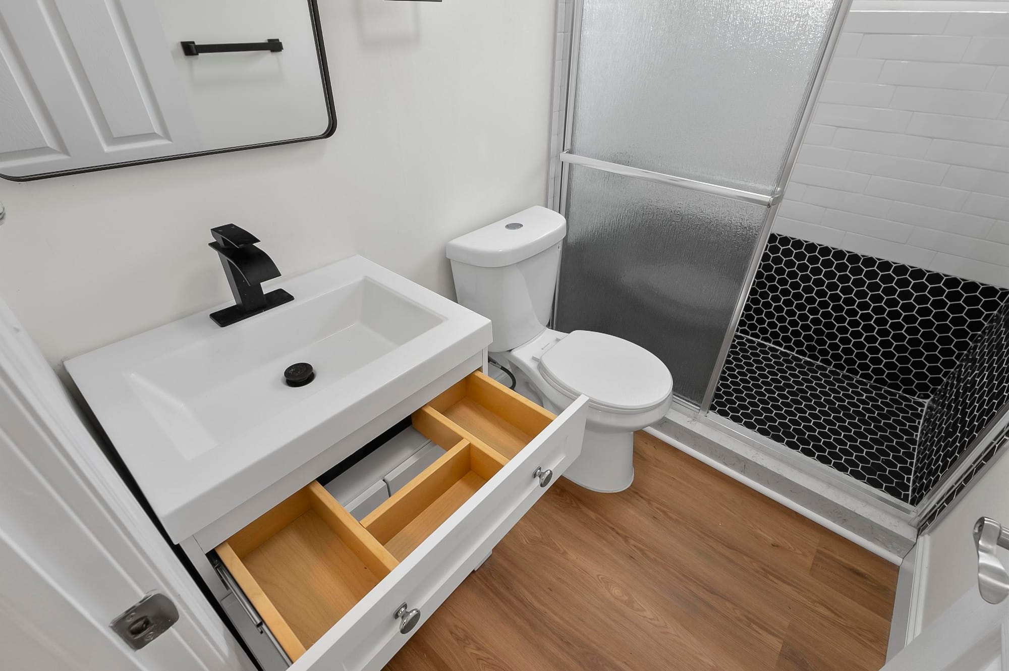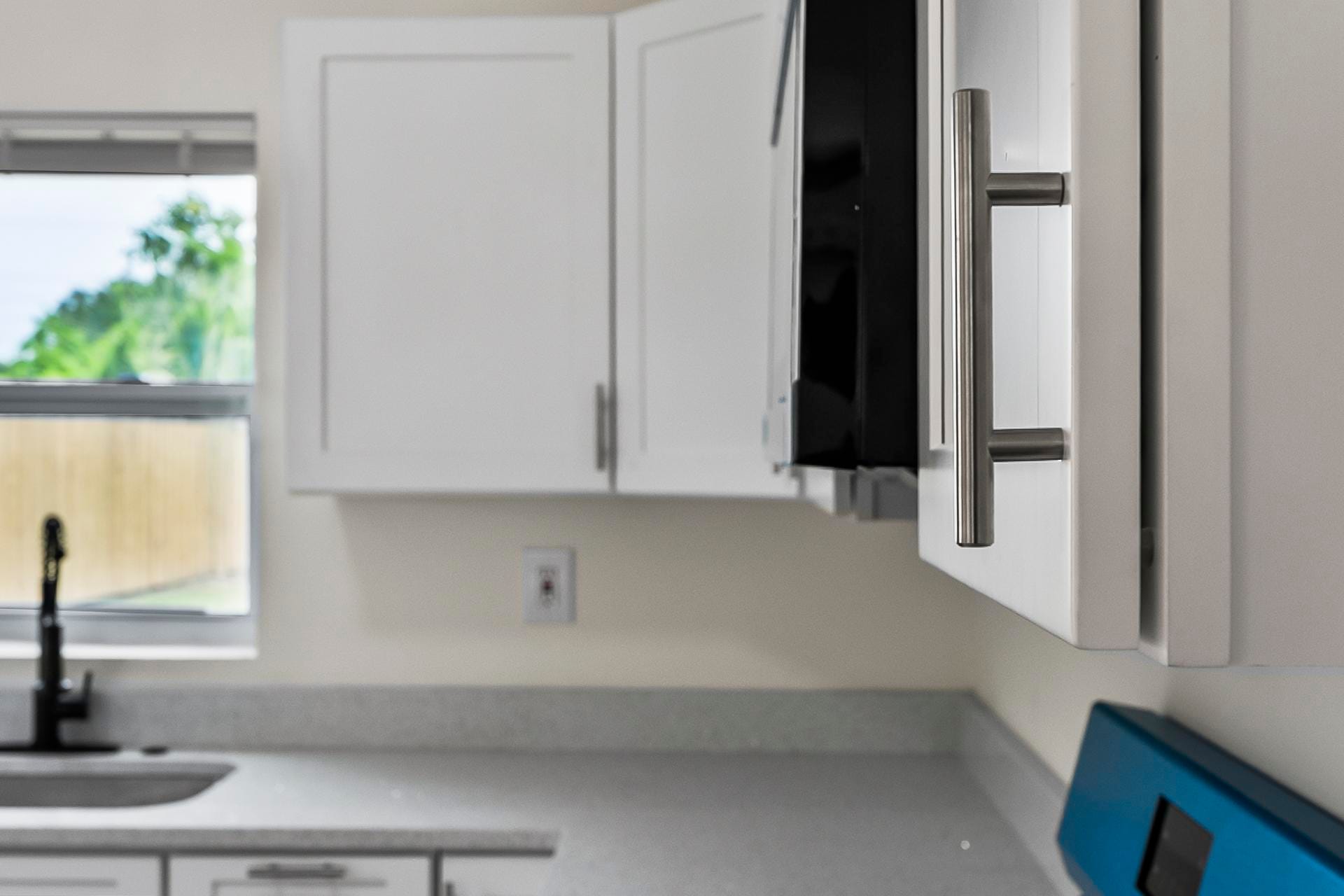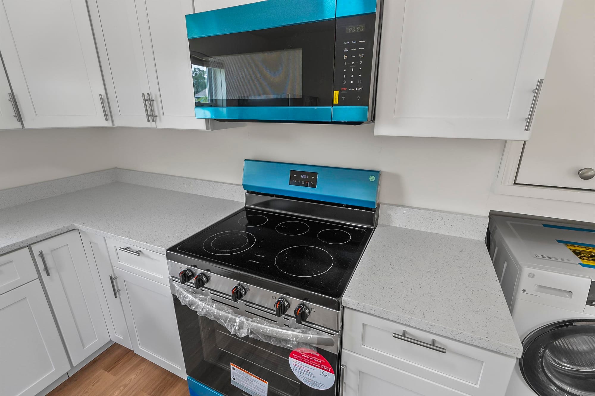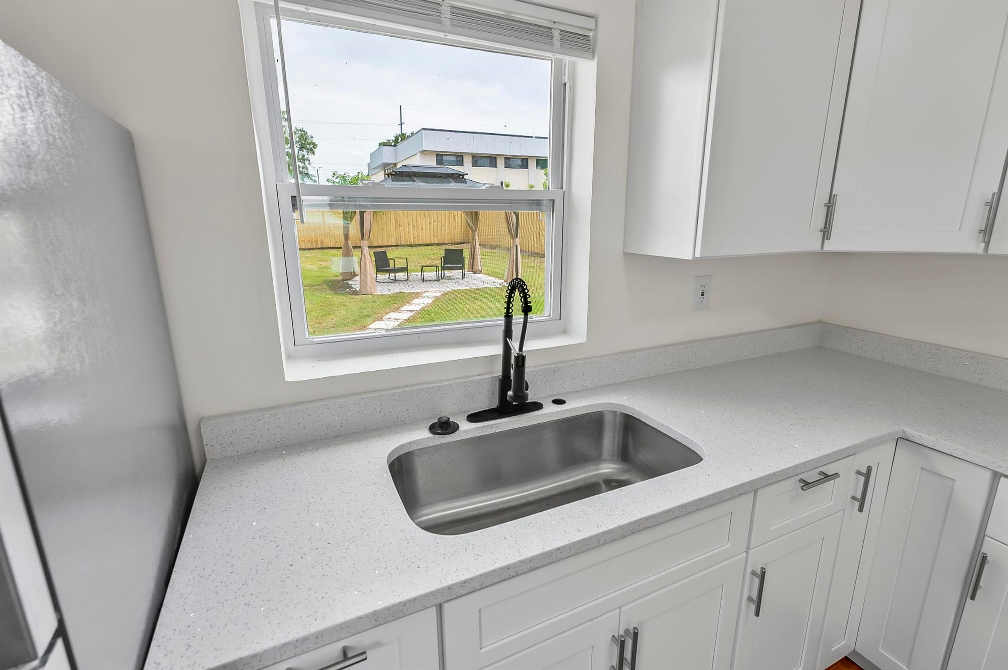 Inside, updates include new windows, fresh paint, updated flooring, and a fully renovated kitchen and bathroom. The kitchen showcases quartz countertops, a sleek peninsula, new appliances, and a space-saving washer/dryer combo.